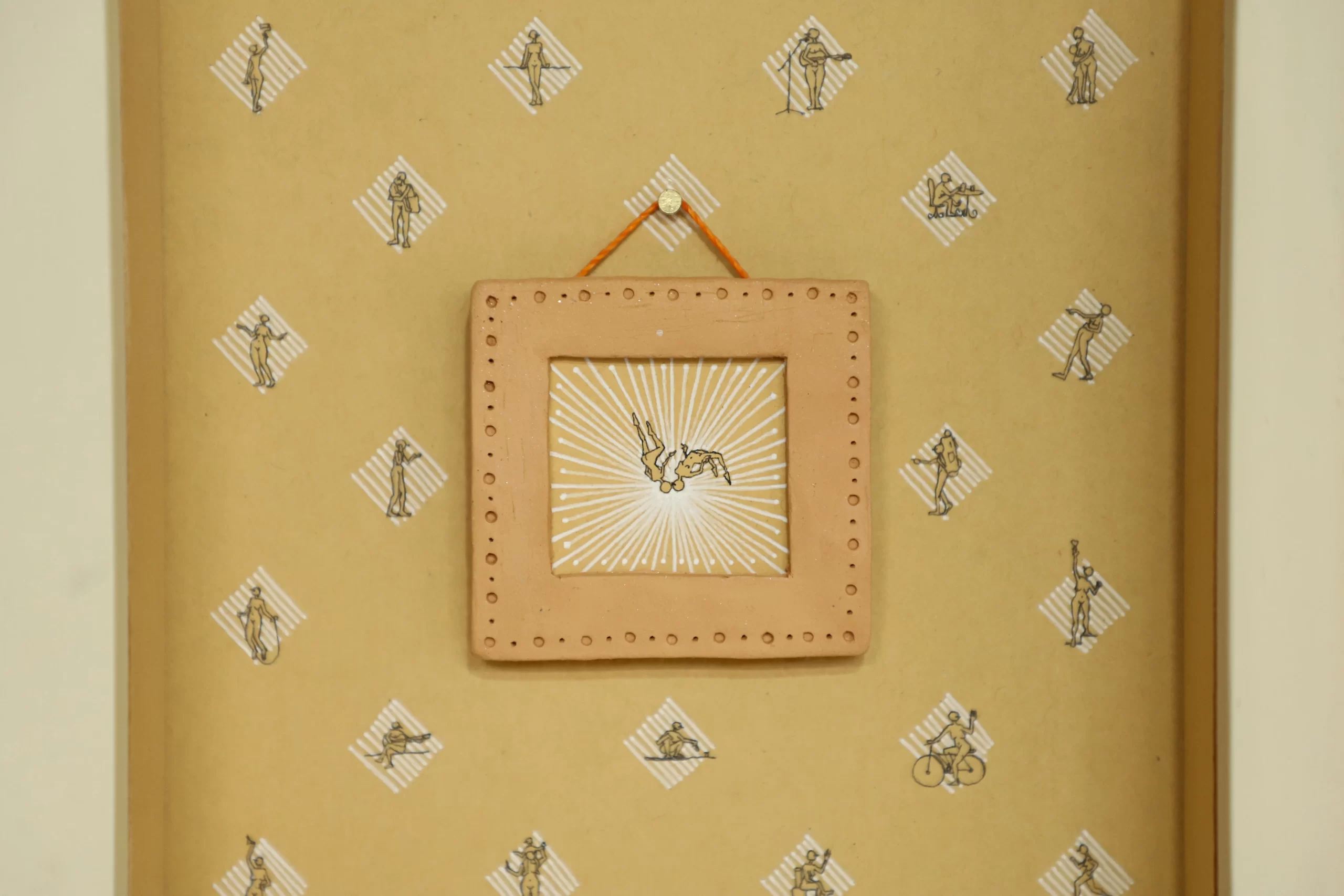 El fondo del cuadro es un papel tapiz de una serie de acciones cotidianas representadas por (dos) mujeres en diferentes momentos de sus vidas. Es entre esas escenas comunes que van avanzando la mayoría de los días…