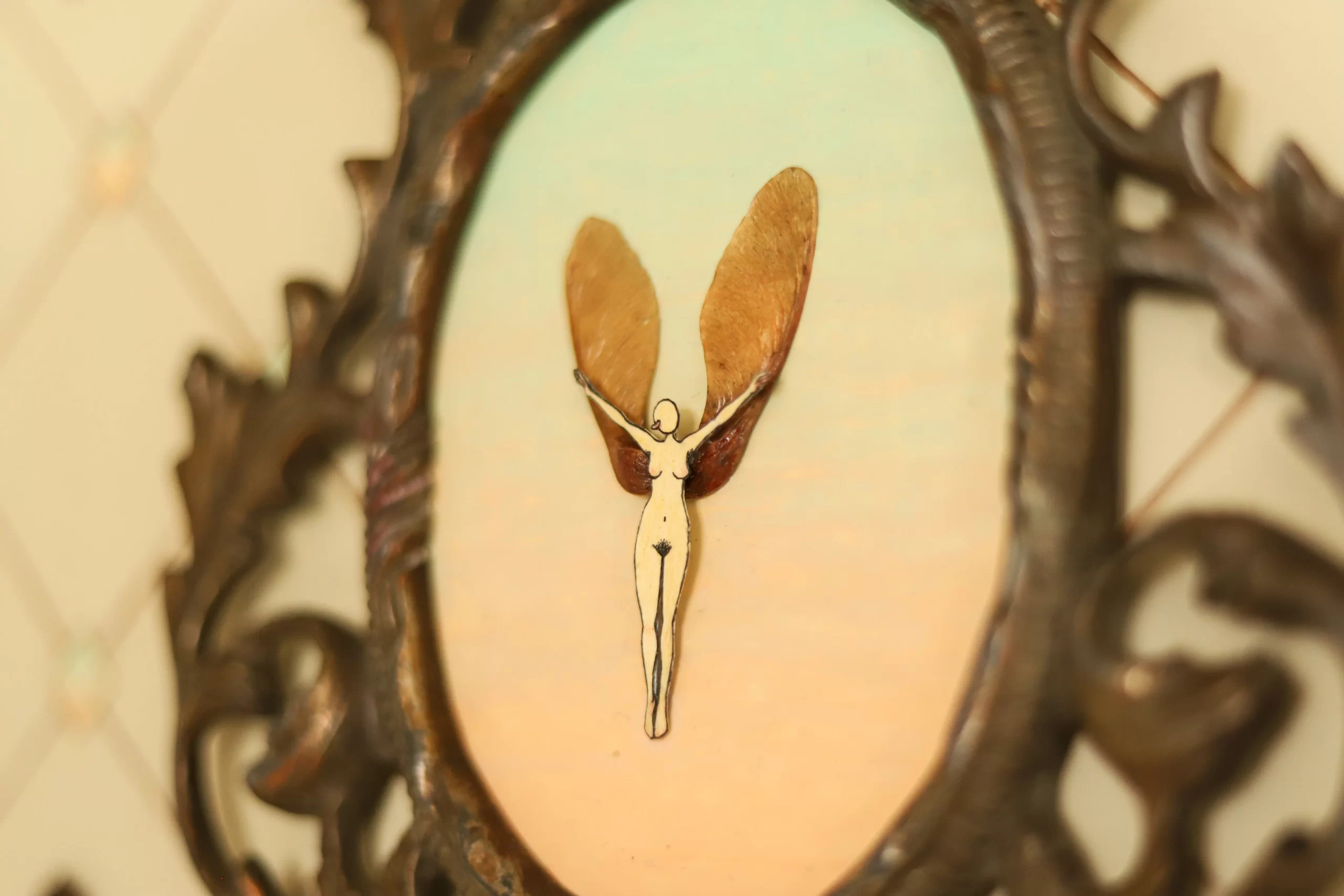 En el centro del cuadro vemos el único par de semillas de arce en el sentido contrario a todas las demás que las rodean, sin embargo, también son las únicas que se transformaron en alas para la protagonista. Haciendo alusión a que muchas veces hay que ir en contra de lo establecido y mantenerse fiel a las propias convicciones para poder Ser.